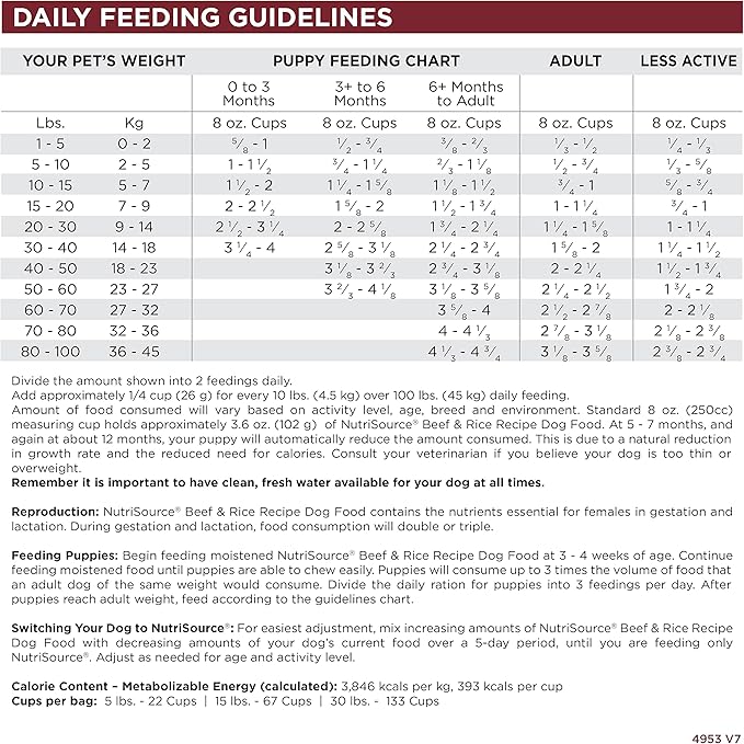 NutriSource Dog Food, Made with Beef and Brown Rice, Wholesome Grains, 5LB, Dry Dog Food