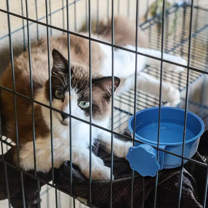 - INSTALLATION DETAILS: Unscrew the blue plastic holder and place dog bowl on crate/cage, install desired adjust angle, turn clockwise tighten to complete. Holes on the holder also can install screws or nails onto wall in the coop or barn