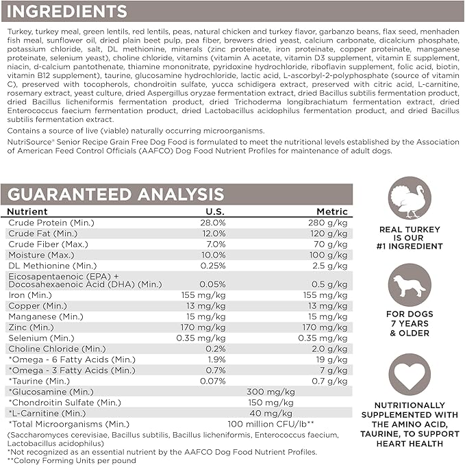 Nutrisource Grain Free ( Turkey ) Senior Dog Food 5Lb