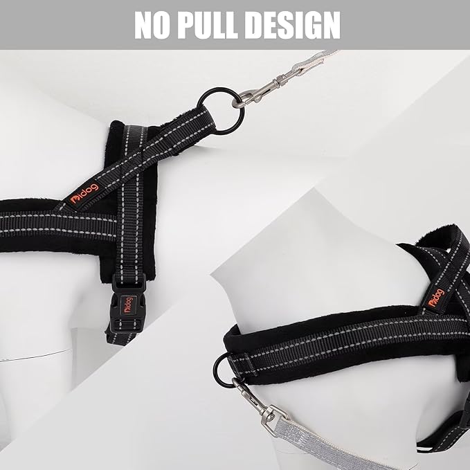 - Effective No Pull & No Choking - The front D ring is welded and link leash here make the harness effective no pulling, no worrying about dog choked when a sudden pull, eliminate leash pulling