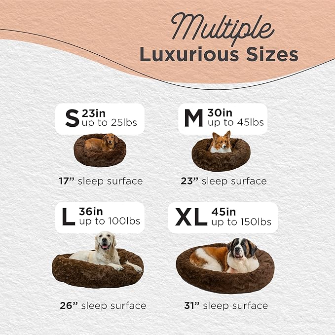 Best Friends by Sheri Original Calming Donut Dog and Cat Bed, Lux Faux Fur, Dark Brown, (23in x 23in) - Anxiety Relief for Pets Up to 25 lbs