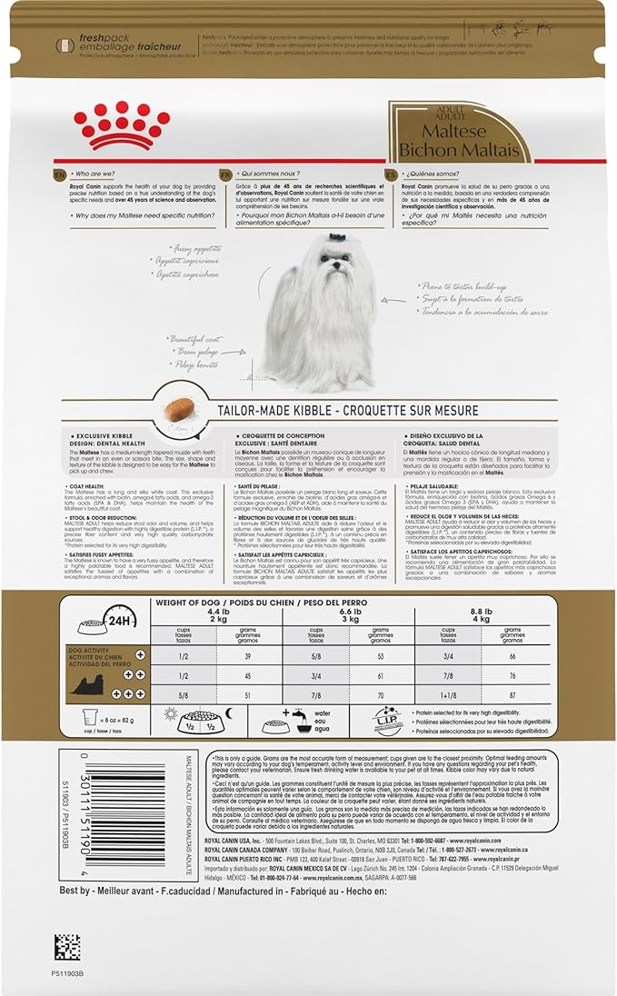 - FORMULATED FOR PUREBRED MALTESES: Royal Canin Maltese Adult Dry Dog Food is designed to meet the nutritional needs of a purebred Maltese 10 months and older