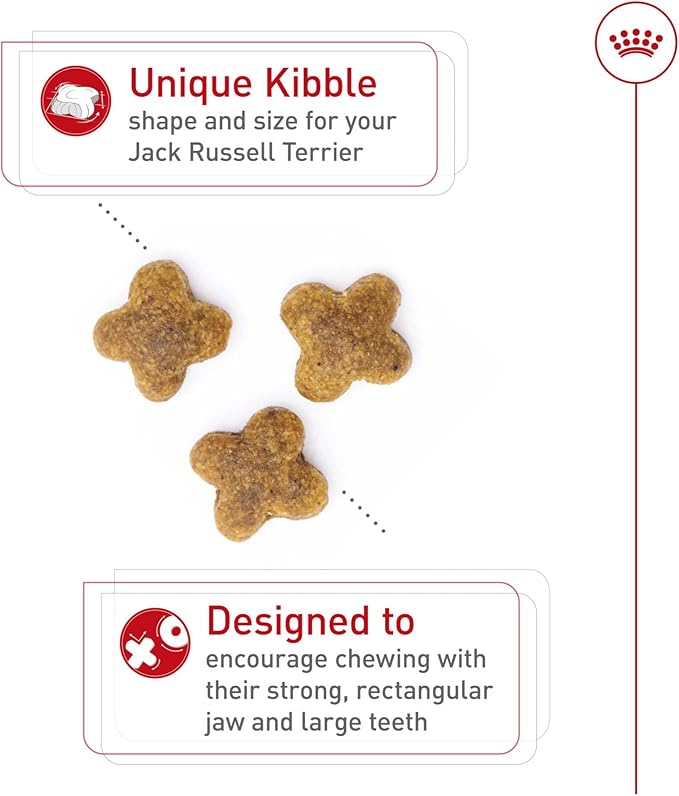 - SPECIALIZED KIBBLE: Unique kibble shape designed to help Jack Russell Terriers easily pick up and chew their food