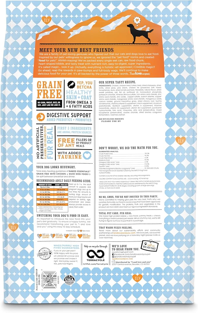 I and love and you Naked Essentials Dry Dog Food - Chicken + Duck - High Protein, Real Meat, No Fillers, Prebiotics + Probiotics, 23lb Bag