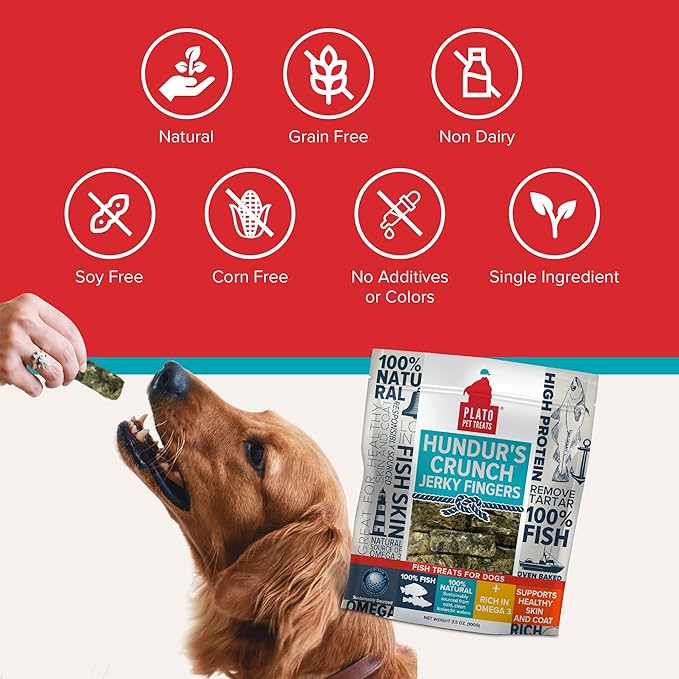 - Fish skin treats that offer a natural source of Omega 3 & 6 fatty acids, support skin and coat health, and help fight tartar while your dog enjoys long-lasting chewing satisfaction