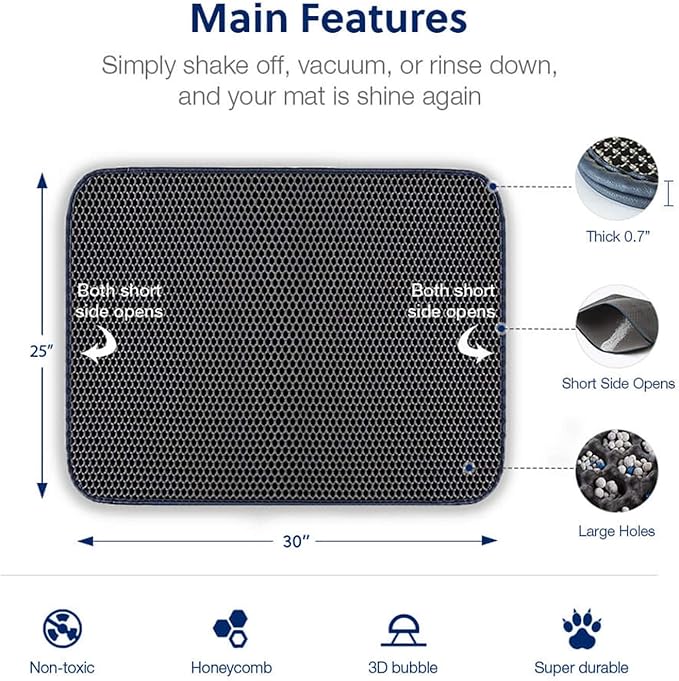 - [FUNCTIONS]: Brilliantly traps cat litter from cat paws and litter boxes with its fully tested double layered design to help trap litter in between and prevent the scattering of kitty litter.