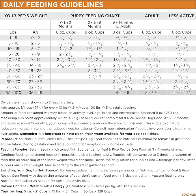 - As a member of our grain inclusive series of dog foods, NutriSource Lamb Meal & Rice Recipe is formulated to meet AAFCO guidelines for all life stages