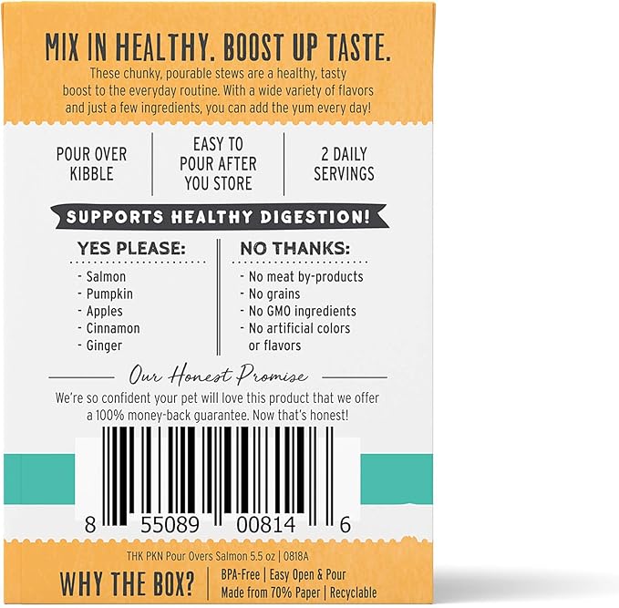 The Honest Kitchen Pumpkin POUR OVERS Wet Toppers for Dogs (12 Pack), 5.5 oz - Salmon Stew