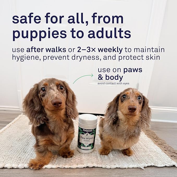 - PART OF THE PETPOST ROUTINE. Pair these paw wipes with Petpost Wrinkle Wipes, Grooming Wipes, or Tear Stain Remover Wipes for a full cleaning routine that keeps your dog looking and feeling fresh.