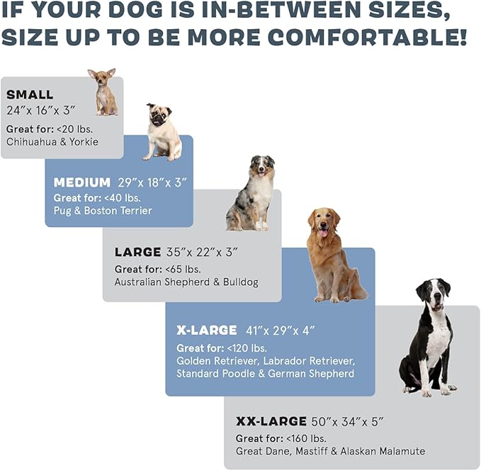 - Ideal for All Sizes: Available in small, medium, large and extra large sizes, this large dog bed at 35" x 22" x 3", suits a variety of breeds. Whether you need an dog bed for a crate or an water resistant dog bed, our orthopedic dog bed meets your requirements.