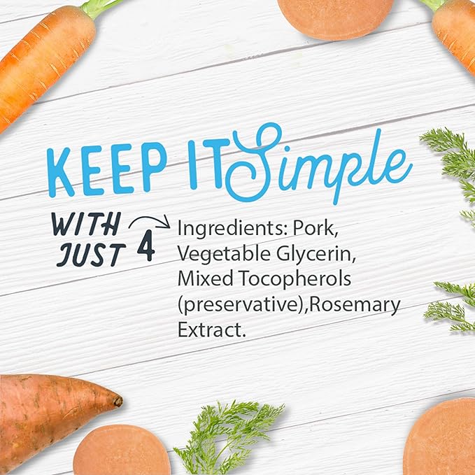 - FREE FROM FILLERS: All of our protein-packed treats are free from grain, soy, and corn. Your pup can savor the natural, rich flavor of American farm-raised pork without any fillers.