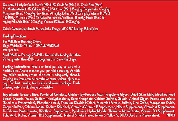 Milk-Bone Original Brushing Chews, 25 Small/Medium Daily Dental Dog Treats Scrubbing Action Helps Clean Teeth