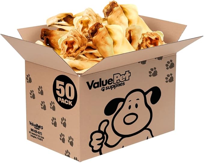 ValueBull Cow Ears, Varied Sizes/Shapes, 50 Count Bulk Pack - All Natural Dog Treats, 100% Angus Beef, Single Ingredient, Fully Digestible, Cleans Teeth & Gums