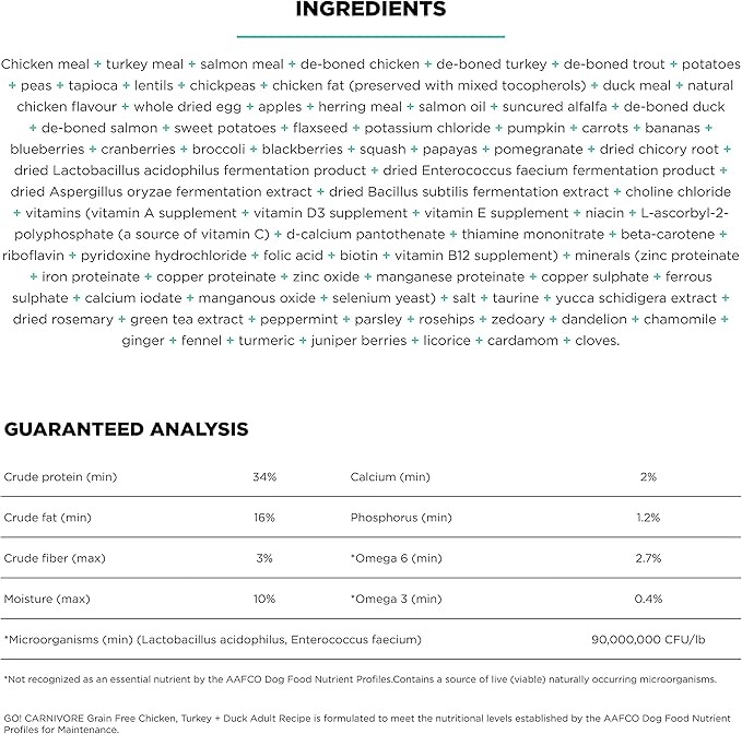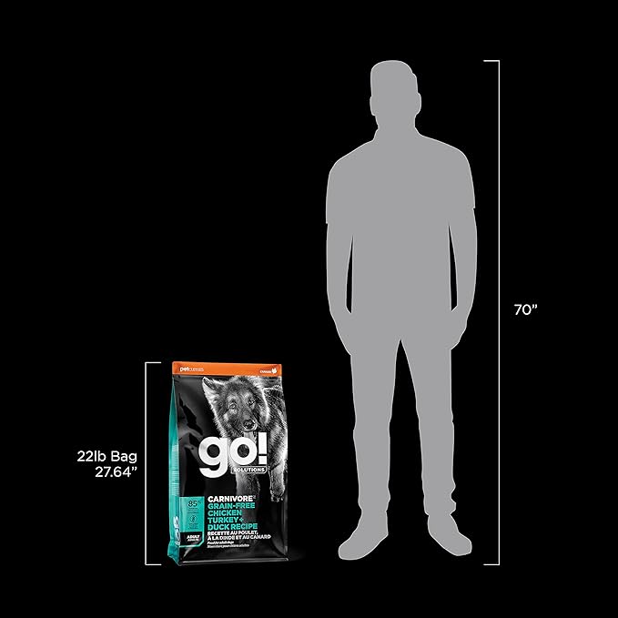 Go! Solutions Carnivore, Grain-Free, Protein Rich Dry Dog Food, Chicken, Turkey and Duck Adult Recipe, 22 lb Bag