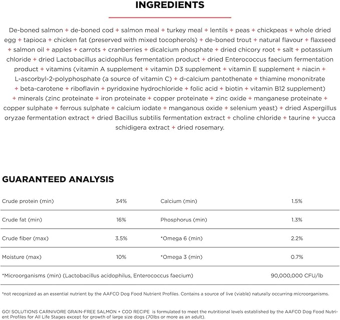 Go! Solutions Carnivore, Grain-Free, Protein Rich Dry Dog Food, Salmon and Cod Recipe, 12 lb Bag