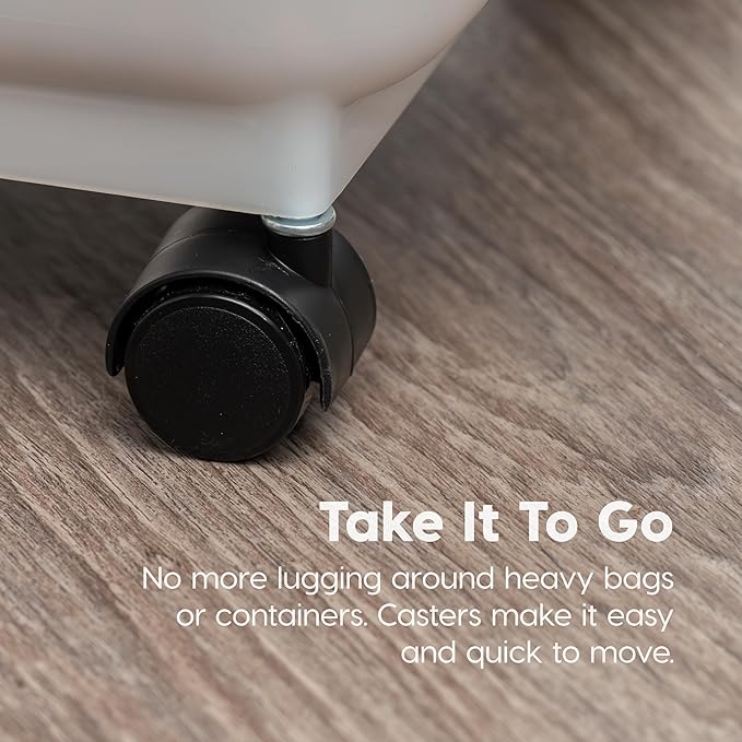 IRIS USA Airtight Dog Food Storage Container, WeatherPro, Up to 40 lbs, Removable Wheels, for Dog Cat Bird and Other Pet Food Storage Bin, Keep Fresh, Translucent Body, Made in USA, Pearl/Almond