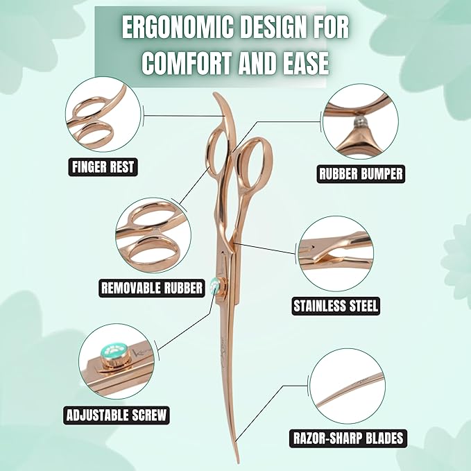 Kenchii Rose Dog Grooming Scissors, 7 Inch Curved Shears, Dog Scissors for Grooming, Ergonomic Design for Comfort and Precision, Heavy Duty, Durable and Sharp
