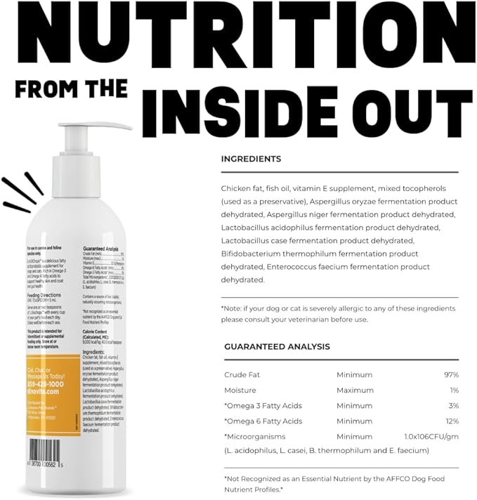 Dinovite Lickochops for Dog & Cat Supplement Enhanced with Omega-6, 3 Fatty Acids, Probiotics and Vitamin E, 16 oz with Pump