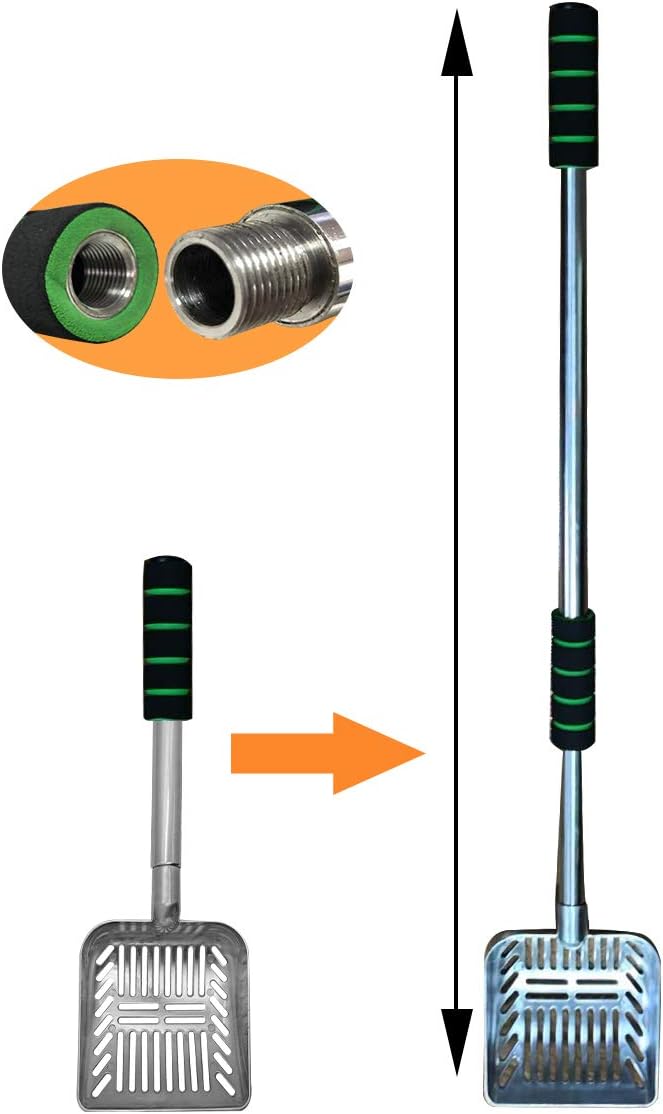 32 inch Cat Litter Scooper Metal Cat Litter Scoop Long Handle Cat Scoop Litter Box Scooper Non-Stick Aluminum Deep Shovel Litter Scoop Large Kitty Sifter Scoop Manages Big Clumps of Multi-Cat Families