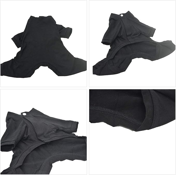 Lovelonglong Four Feet Dog Lightweight Pajamas, Pure Cotton Dog Jumpsuits 4 Legs Dog Onesies T-Shirt Stylish PJS Puppy Costume for Large Medium Small Dogs Black S