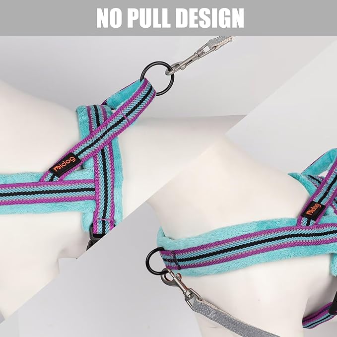 - Comfortable Wearing & Safety Walking - There are soft fleece pads beneath the straps for dog neck and back, pads are wider than straps to make sure dog comfortable feel for each pulling; 2 reflective lines along each strap is helpful to keep your dog safe for night walking
