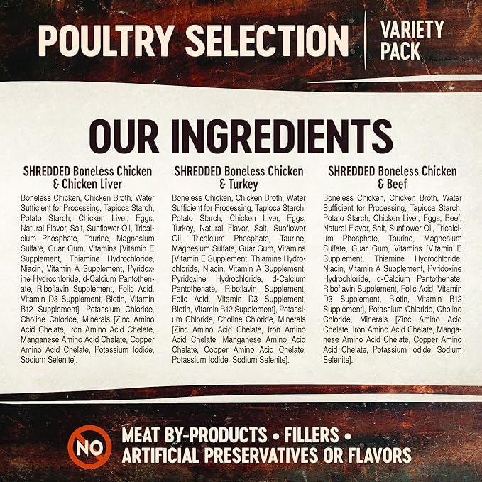 - CHUNKY POULTRY IN SAUCE: This gourmet cat food naturally delivers the variety your cat craves; each protein rich recipe features delicate shreds of real meat in a delicious sauce
