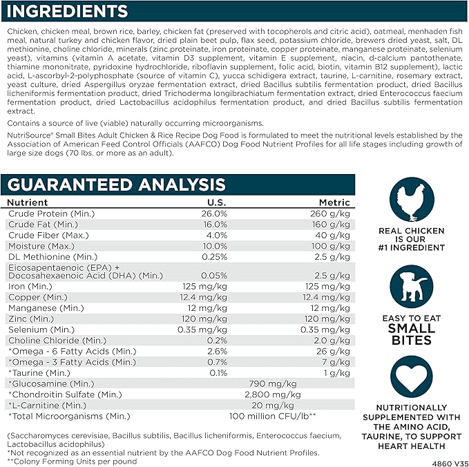 NutriSource Adult Chicken & Rice Small Bites Dog Food 5lb