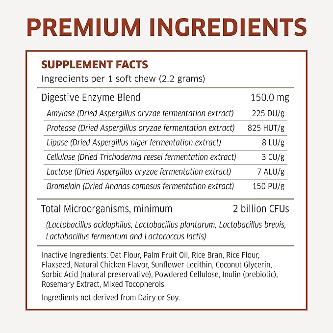 - NATURAL INGREDIENTS - Our probiotic for dogs treats contain NO CORN, SUGAR, WHEAT, ARTIFICIAL FLAVORS, COLORS or GMOs.