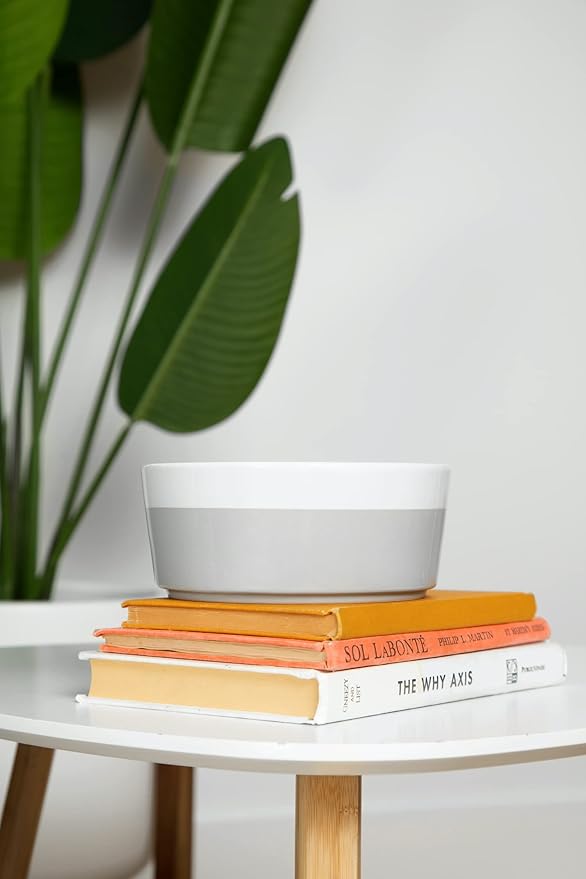 Waggo Dipper Ceramic Dog Bowl for Small and Large Breeds - Heavyweight and Durable Pet Food and Water Dish Crock, Dishwasher Safe, Modern (Black, Large)