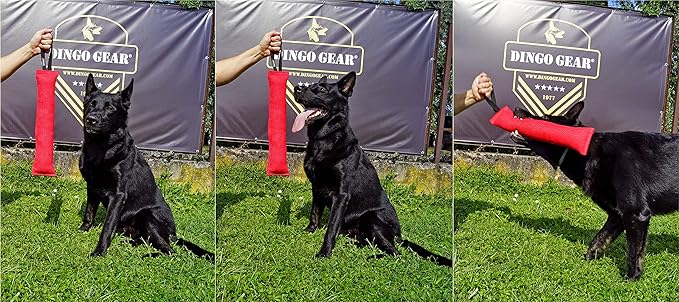 Dingo Gear French Linen tug Toy for Dog, Dog Bumper for Training, Agility, tug of war, Dog bite Pillow for Strong Dog, 1handle 18" red S00065