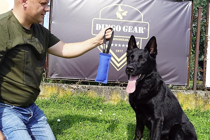 Dingo Gear French Linen tug Toy for Dog, Bumper Toy for Training, Agility, tug of war, bite Pillow for Strong Dog, 1handle 8in Blue S00071