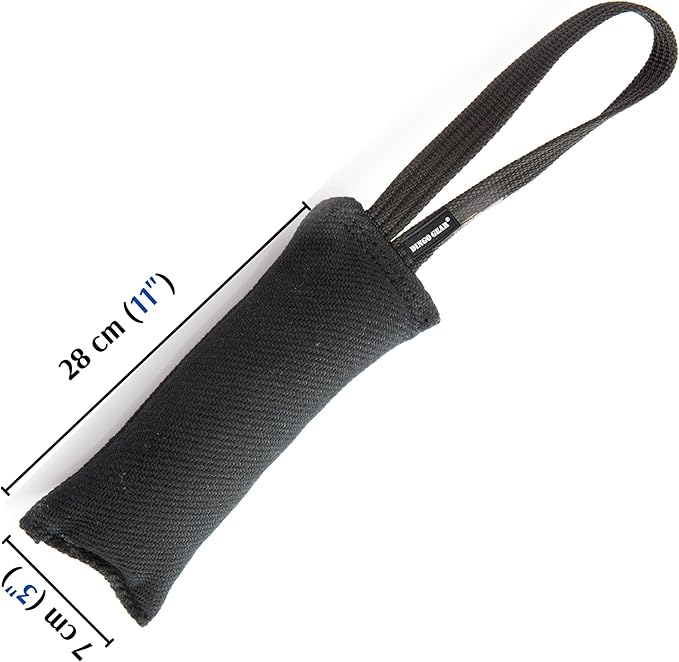 Dingo Gear French Linen tug Toy for Dog, Dog Bumper for Training, Agility, tug of war, Dog bite Pillow for Strong Dog, 1handle 11" Black S00073