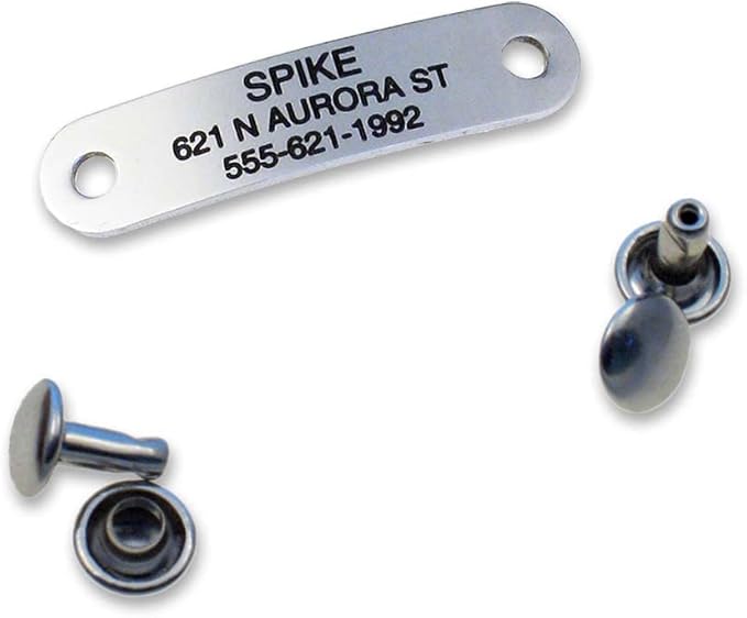 - Variety Of Finishes For Style - Select from Stainless Steel (Matte Finish or Mirror Finish) or Polished Brass to match your pet's style. Easy installation with included rivets, and all sizes fit on collars that are 1/8-inch thick or less.