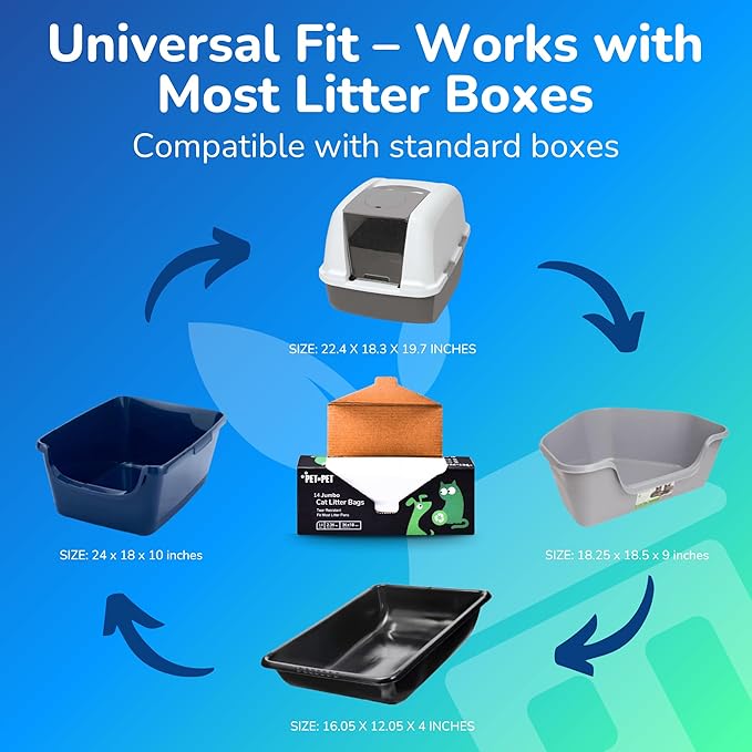 - [Total Litter Box Protection] โ Revamp your catโs litter box routine with our disposable litter box bags liners! Designed to fit most standard litter boxes, including top-entry ones, they provide ample coverage and protection for your litter pan