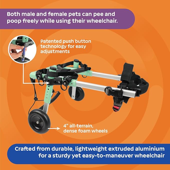 - ADJUSTABLE DESIGN FOR THE PERFECT FIT - This wheelchair for small dogs features our patented adjustable design that can be tailored to your dog’s size and changing health. Modify its height, length, and width to ensure that your pet is mobile and comfortable throughout its life stages.