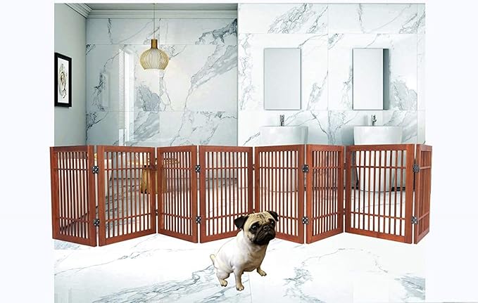 Urnporium Freestanding Pet Gate Folding Wooden Fence for Indoor & Outdoor Use, Durable Acacia Hardwood (Brown Pet Gate, 8 Panel 24" Tall)