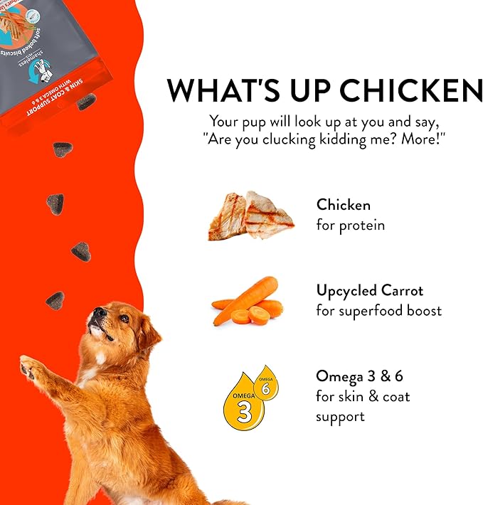 - Soft Baked Biscuits: Shameless Pets What’s up Chicken Soft Baked Biscuits are a healthy indulgence perfect for training any dog, from puppy to senior. You know you picked a winner of a treat when those big puppy dog eyes look up at you and say "are you clucking kidding me? More!" Includes one 6oz packs of treats.