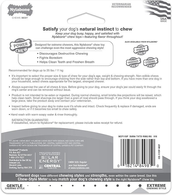 - Power Chew Strength - Nylabone engineered this chew toy with the toughest nylon material to withstand extreme chewing