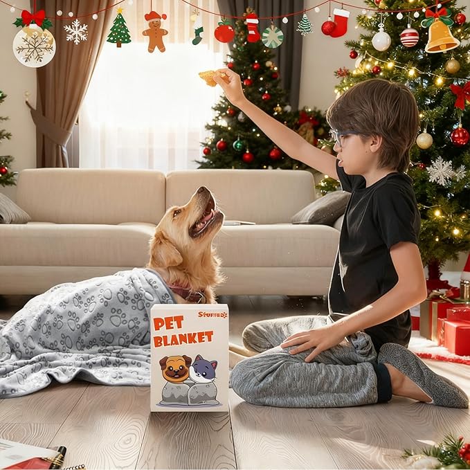 - PREMIUM MATERIAL FOR PETS ONLY: Super Soft & Warm comfy fleece for your pets, exclusive cute paw prints design on the top, lovely solid gray color on the back, no fear of peeing, bitting, chewing and tearing. Your dog will love this dog products!