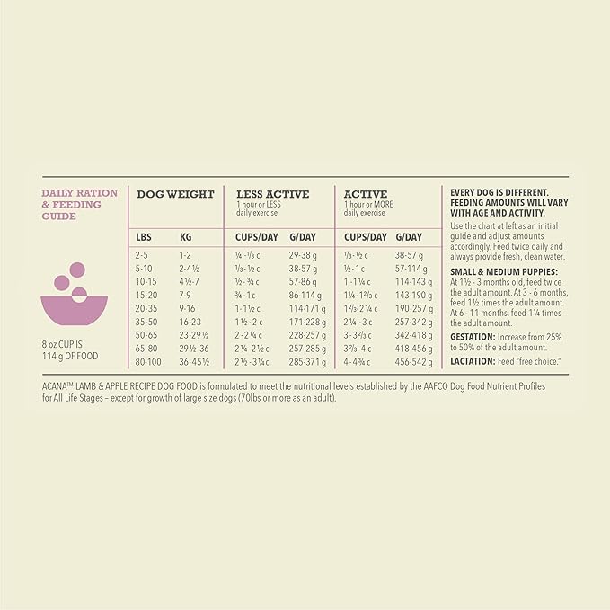 - One (1) 22.5 lb bag of ACANA Singles Limited Ingredient Lamb & Apple Recipe Dry Dog Food