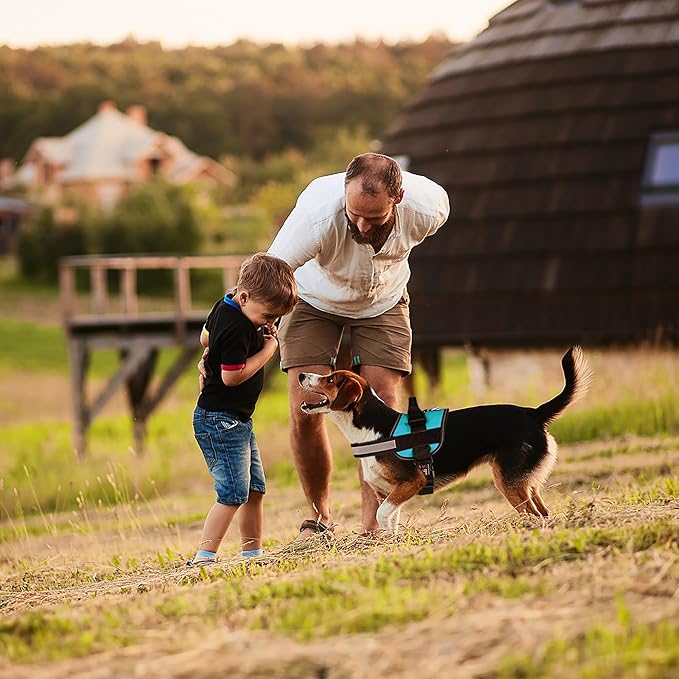 Dogline Dog Harness, Reflective No-Pull Adjustable Vest with Handle for Walking, Training, Breathable, No - Choke Harness for Small, Medium or Large Dogs Room for Patches Girth 33"-46" in Turquoise