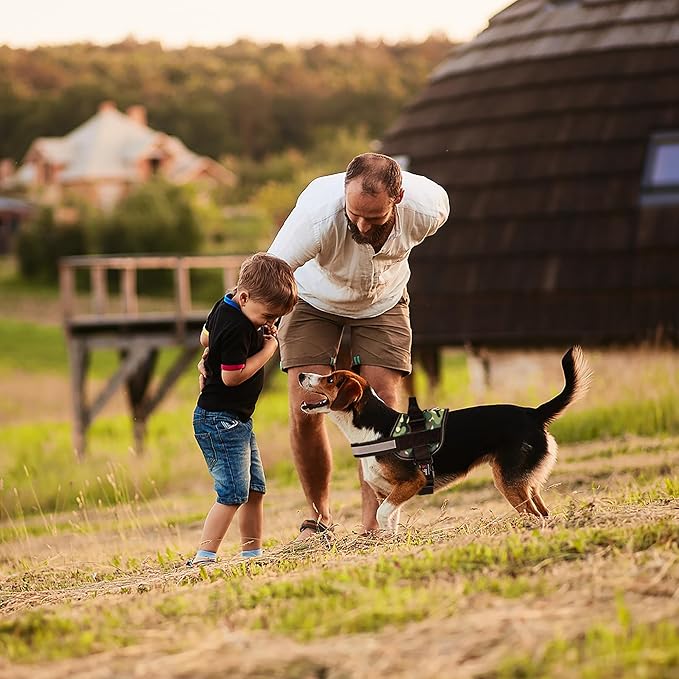 Dogline Dog Harness, Reflective No-Pull Adjustable Vest with Handle, Breathable No-Choke Harness for Small, Medium or Large Dogs Room for Patches Girth 27 to 34 in Green Camo
