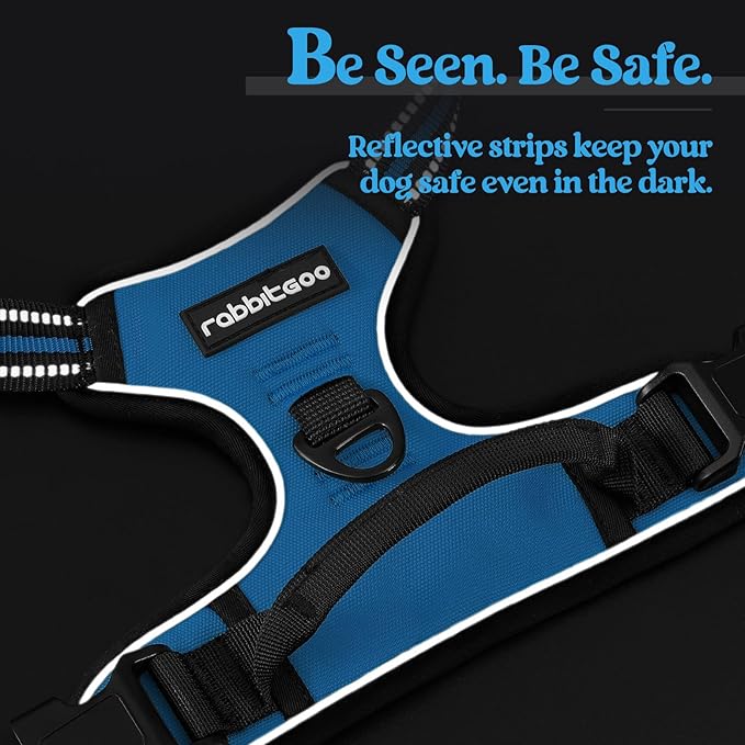 rabbitgoo Dog Harness No Pull with 2 Leash Clips, Adjustable Soft Padded, Reflective Oxford No Choke Pet Vest with Easy Control Handle for Small Dogs, Blue, S