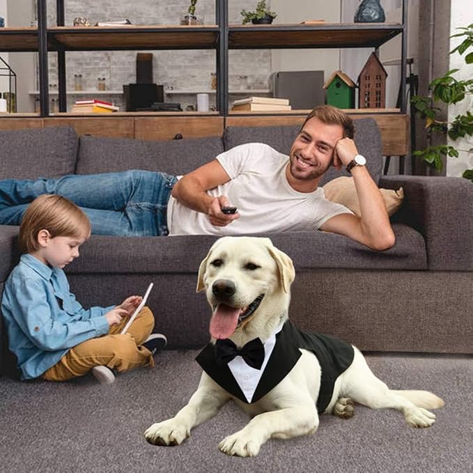 Kuoser Dog Tuxedo Dog Suit and Bandana Set, Dogs Tuxedo Wedding Party Suit, Doggy Prince Bow Tie Shirt Formal Pet Wedding Attire for Large Medium and Small Dogs Golden Retriever Samo Bulldogs