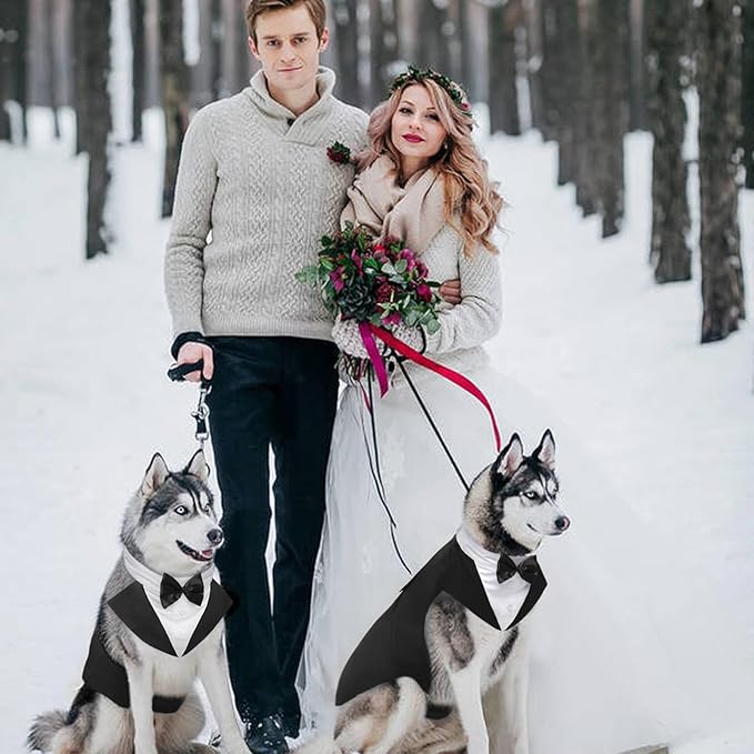 - Two Piece Set: Formal Dog Tuxedo and Dog Wedding Bandana Set, can be used seprately. Bandana for comfortable wear featuring neck or bow tie along with decorative buttons to show off your best friend's personality
