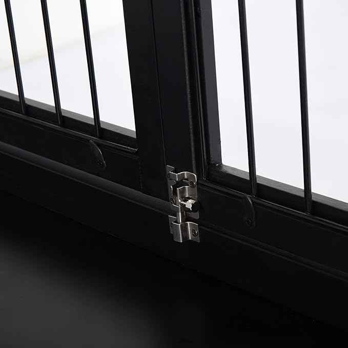 - Double Entrances: The two-way entry makes it easy to let the dog out, allowing you to unlatch the door in a quick moment, reaching from any angle while sitting on the couch or in a chair. With French doors on the side, the doors of this wood dog crate treat your furry friend with style.