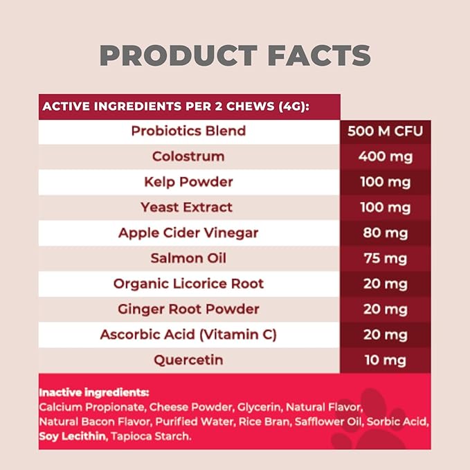 - Formulated with natural ingredients like colostrum, probiotics, and salmon oil to soothe itchy skin and support a healthy immune system