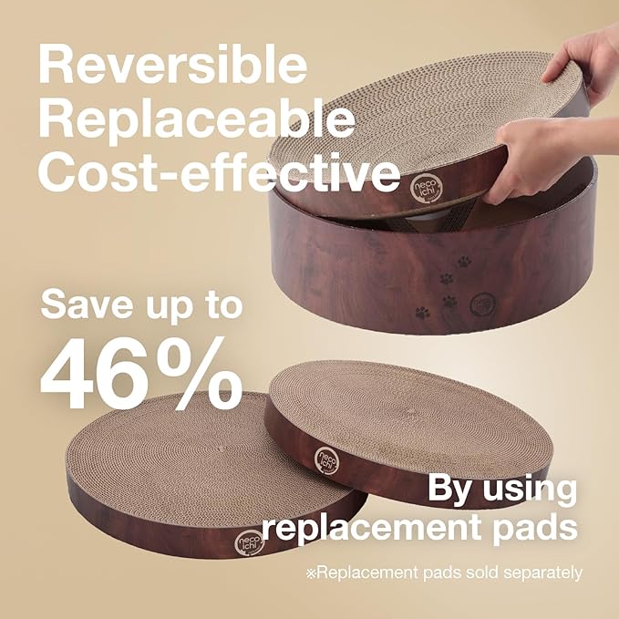 Necoichi Cat Scratcher Bowl for Indoor Cats - Cat Scratching Lounger with Reversible Usability and Extra Comfort for Lounge, Cardboard Bed Couch / (Regular, Dark Cherry)