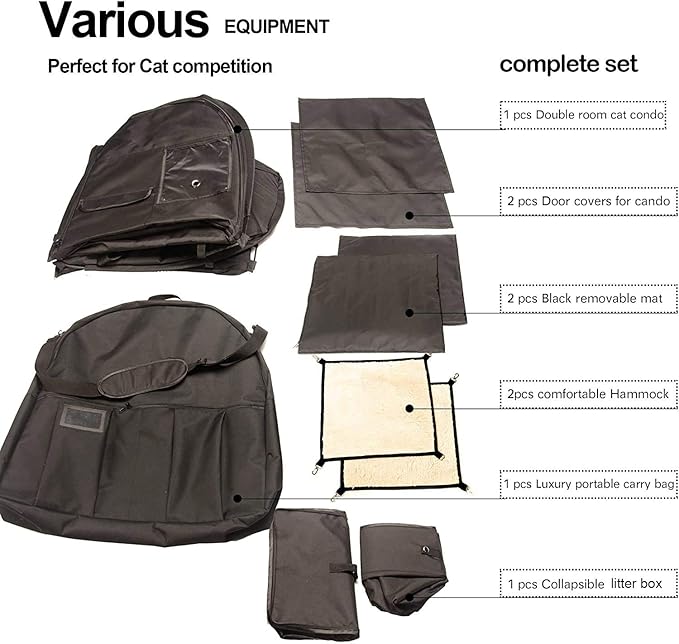 Mispace Portable Twin Compartment Show House Cat Cage Condo,Comfy Puppy Home Dog Travel Crate with Carry Bag/2 Hammocks/Mats & Collapsible Litter Box