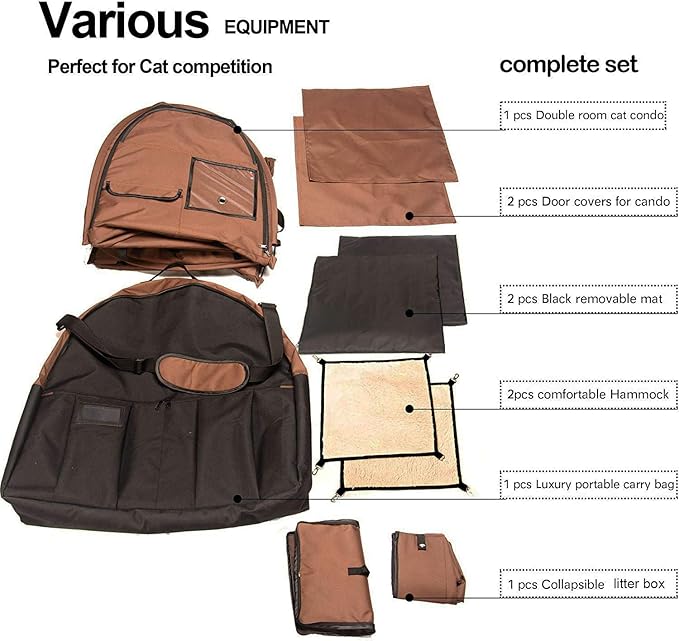 Mispace Portable Twin Compartment Show House Cat Cage/Condo - Easy to Fold & Carry Kennel - Comfy Puppy Home & Dog Travel Crate with Portable Carry Bag/Two Hammocks/Mats and Collapsible Litter Box